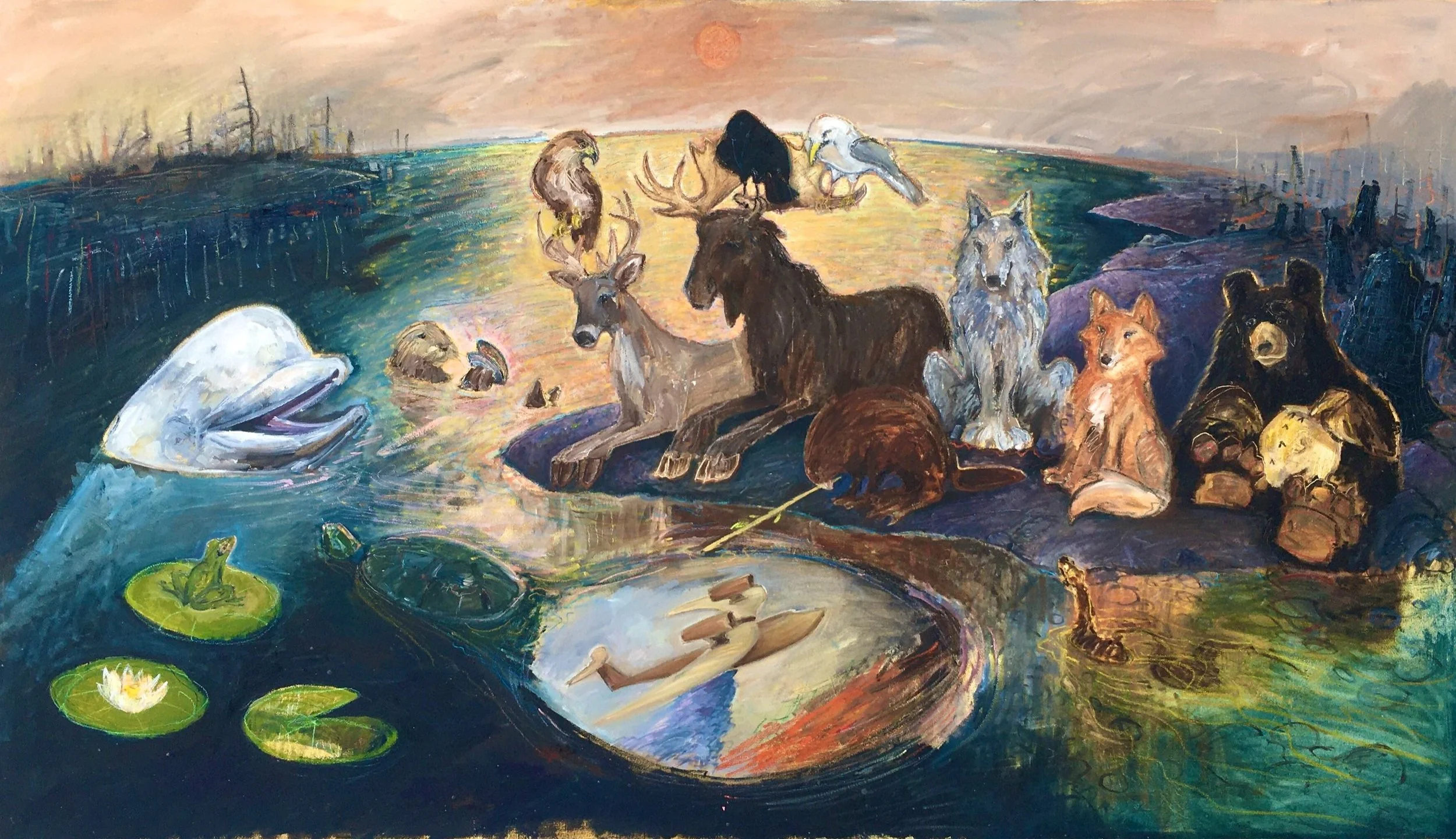 Whale was there, Otter, Beaver, Bear, Wolf, Fox, Moose, Deer. And, as representatives of some of the other great animal clans: Turtle, Frog, Hawk, Gull, and Raven. A representative of Homo Sapiens was also invited to attend, as they were the ones who got everyone into this mess in the first place, and perhaps could get us all out too.